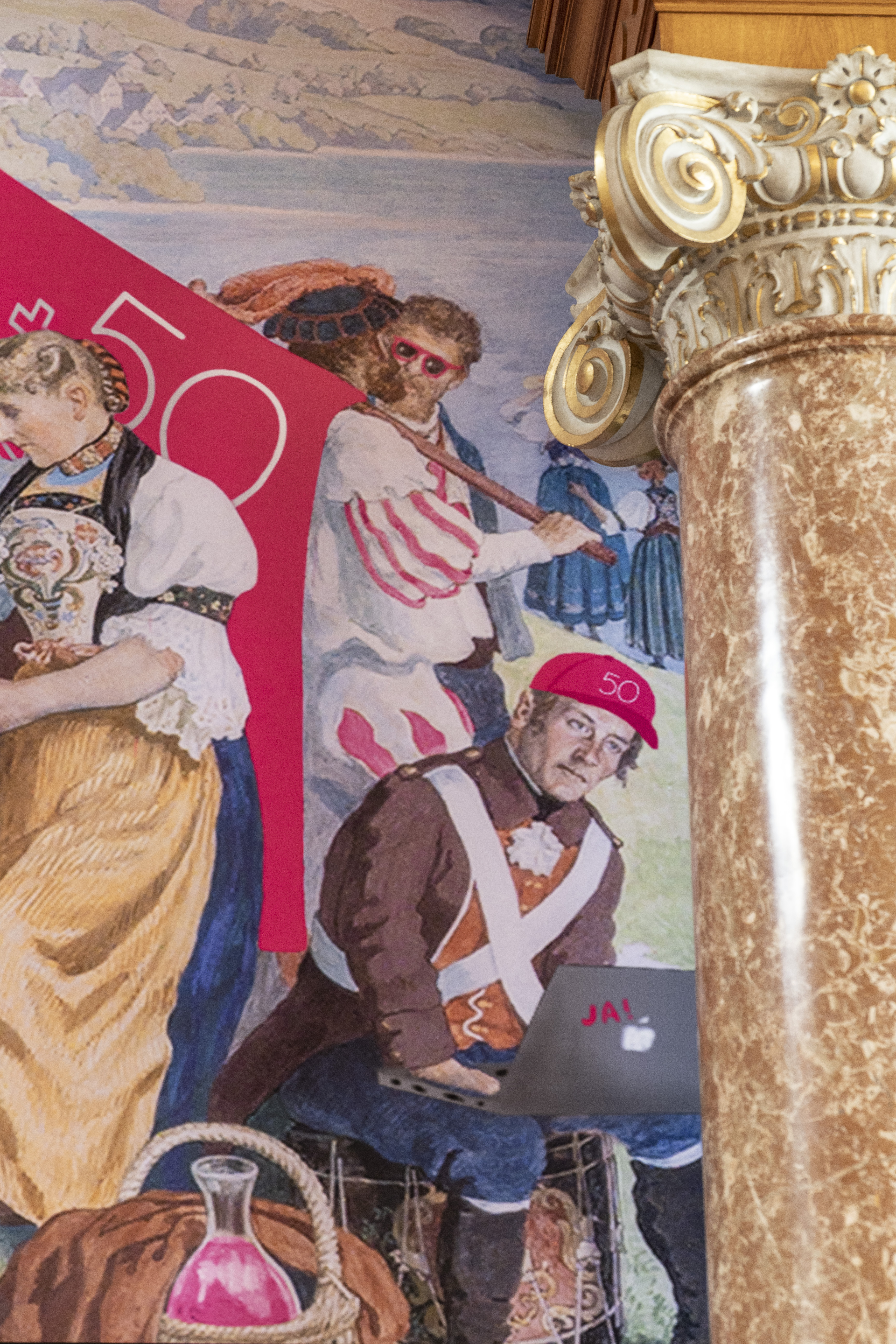 BERN.08.03.2021 Internationaler Frauentag - Journée internationale des femmes - Fresko im Ständeratssaal: Frauen nehmen an der Landsgemeinde teil - Des femmes dans la fresque de la landsgemeinde de la salle du Conseil des Etats. © Béatrice Devènes /Services du Parlement