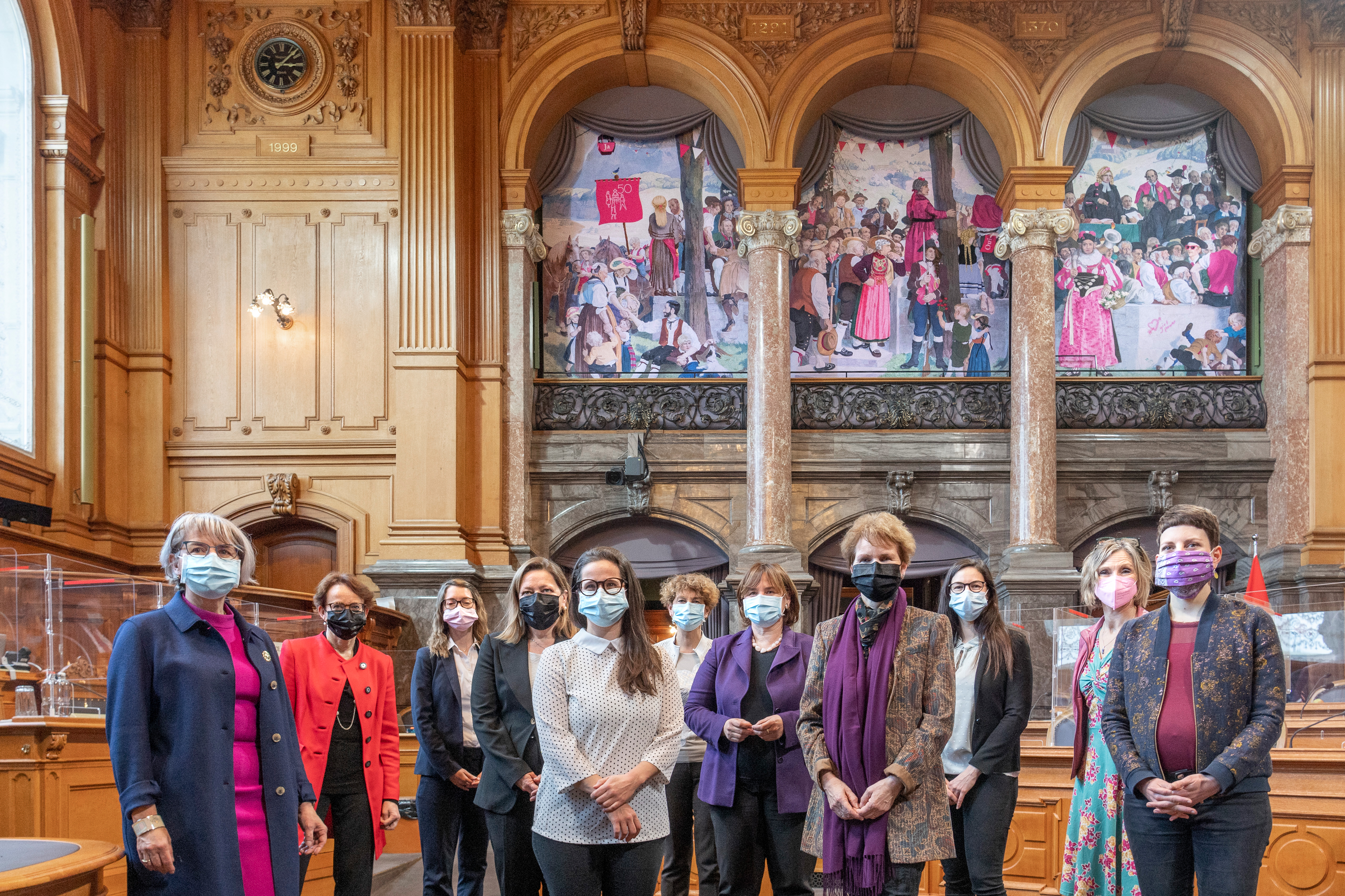 BERN.08.03.2021 Internationaler Frauentag - Journée internationale des femmes - Fresko im Ständeratssaal: Frauen nehmen an der Landsgemeinde teil - Des femmes dans la fresque de la landsgemeinde de la salle du Conseil des Etats. © Béatrice Devènes /Services du Parlement